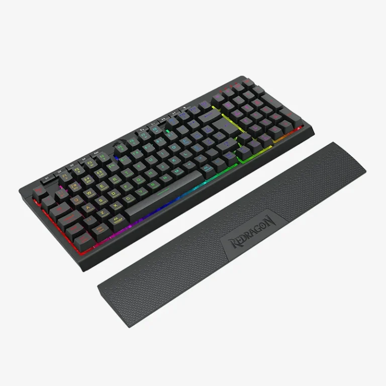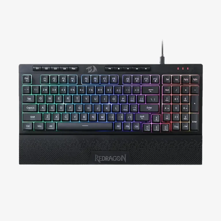 کیبورد گیمینگ ردراگون SHIVA K515 RGB یکی از خاصترین مدلهای ممبران بازار است که تجربهای نزدیک به کیبوردهای مکانیکی را بدون سروصدای آزاردهنده ارائه میدهد. نقطه قوت بینظیر این کیبورد، طراحی ۹۸ کلیدی آن است که هم کلیدهای اعداد را برایتان حفظ کرده و هم فضای بسیار کمتری روی میز اشغال میکند. چهار کلید ماکرو اختصاصی در سمت چپ قرار گرفته که بدون نیاز به هیچ نرمافزاری و تنها با فشردن یک دکمه، میتوانید فرمانهای ترکیبی طولانی را روی آنها ذخیره کنید. این یعنی در بازیهای سنگین، یک کلیک جایگزین چندین حرکت پشتسرهم میشود و سرعت عملتان را چند برابر میکند .